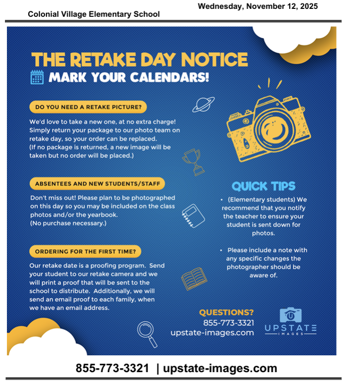 Picture Retake Notice- Wednesday, November 12th